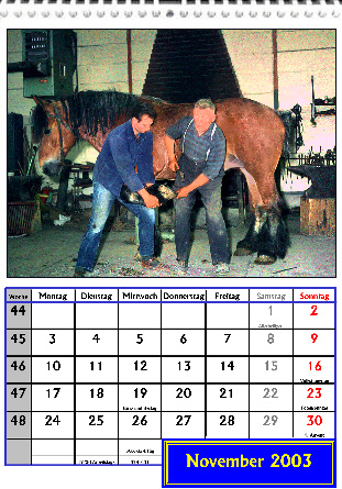![]() Friedrich Wilhelm Ohlendorf (links), und Schmiedemeister Otto Willke (rechts) beim Beschlagen eines Pferdes mit einem Hufeisen in der Schmiede Oberdorf 8. Foto: vor 1970 / Heinz Bauer |